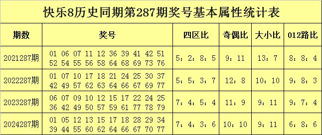 万妙仙舒坦8历史同时第287期奖号基本属性分析