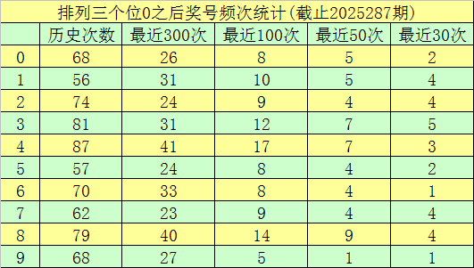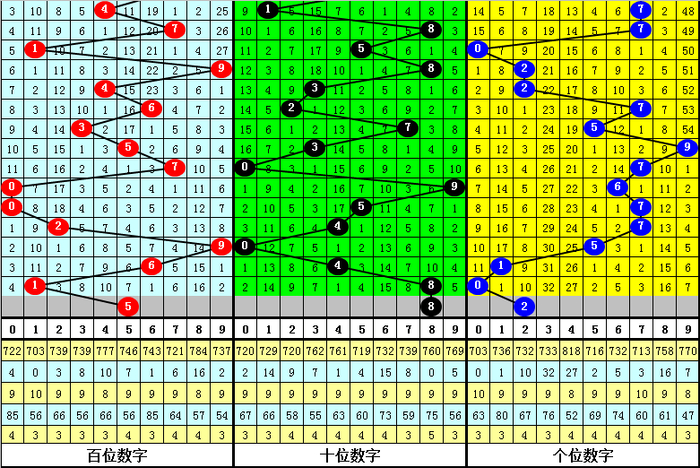 第三位杀号:第三位上期出现奖号0,该位历史上奖号0已开出了703次,最近100挨次三位开出0时,下期号码0-9分袂落号:号码4→17次,8→14次,3→12次,1→10次,2、7→9次,0、5、6→8次,9→5次。