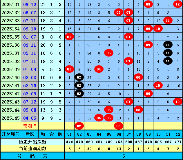 后分裂析:上期后区开出奖号04和05,在最近50期开奖中,后区奖号012路落号比为25:35:40,前10期后区012路落号比为3:6:11,本期后区神色号码02、06、10、11、12,两码参考02、06。