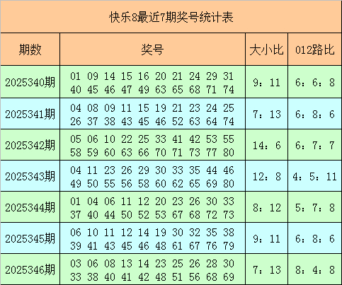广州克胡网络科技有限公司 347期阿财快意8揣摸奖号:大小比分析