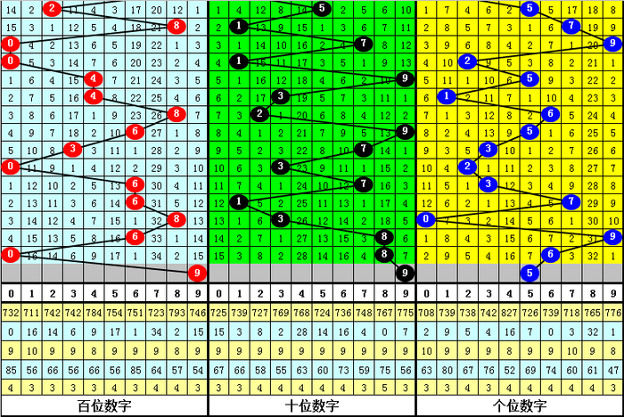 百位:上期开出0,近10期012路比为7:1:2,其中0路号连开2期,本期眷注0路号,参考9。