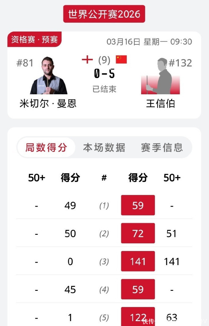 关联词,奥沙利文、特鲁姆普、希金斯等东说念主气球王的参赛,更有赵心童、肖国栋、张安达等中国名将的出战,让比赛莫得失去看点。首个比赛日,出战的中国选手举座阐扬就可圈可点。其中,第一时段初始的一场初赛轮的较量中,小将王信伯以5-0横扫米歇尔-曼恩。